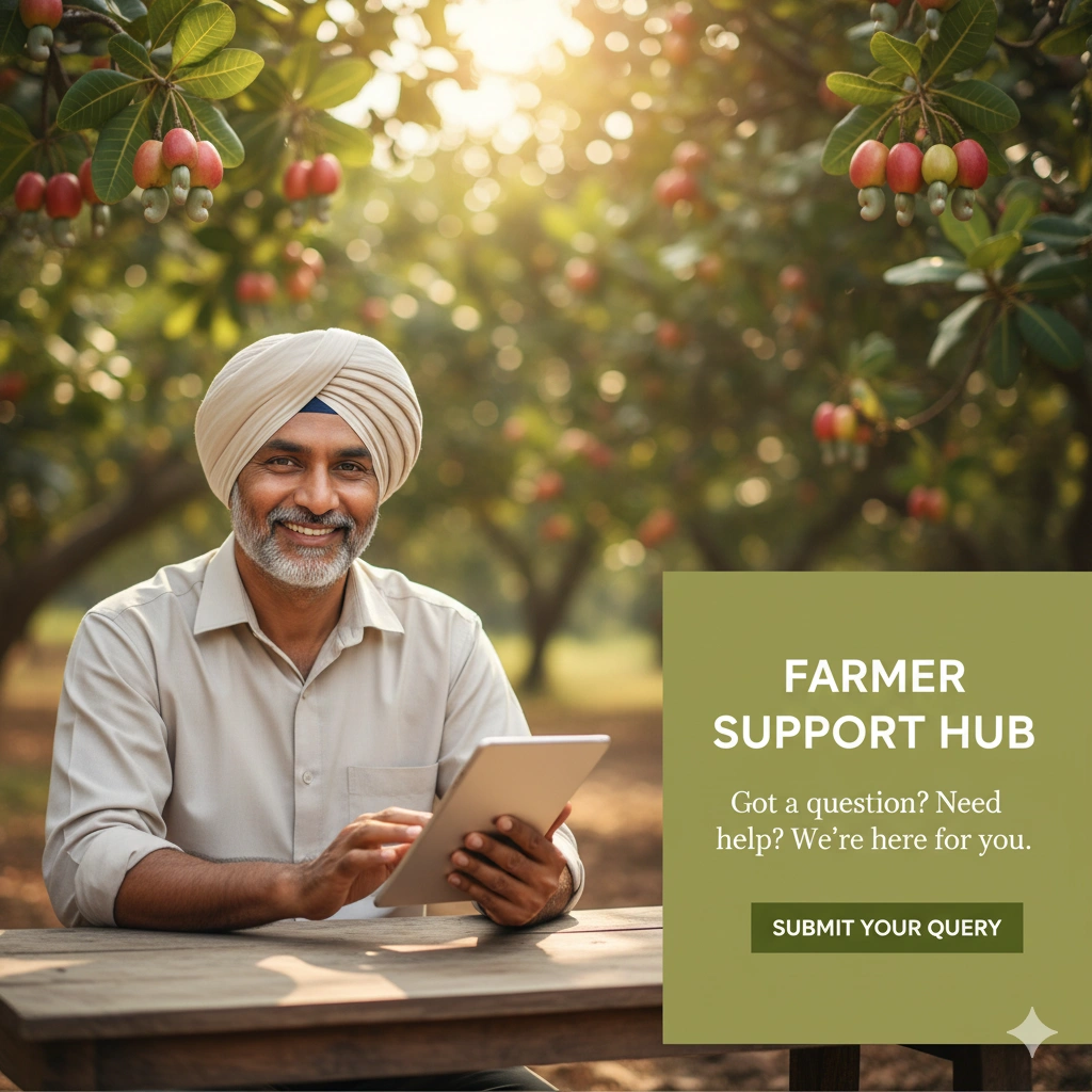 Our digital tools—crop calculators, farm doctor, and seasonal calendars—help farmers plan better, predict yields, and protect crops effectively, making cashew farming smarter and more productive.